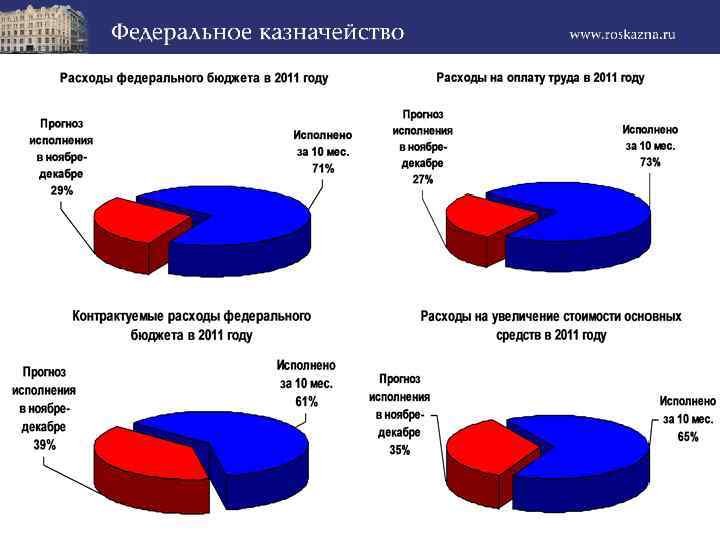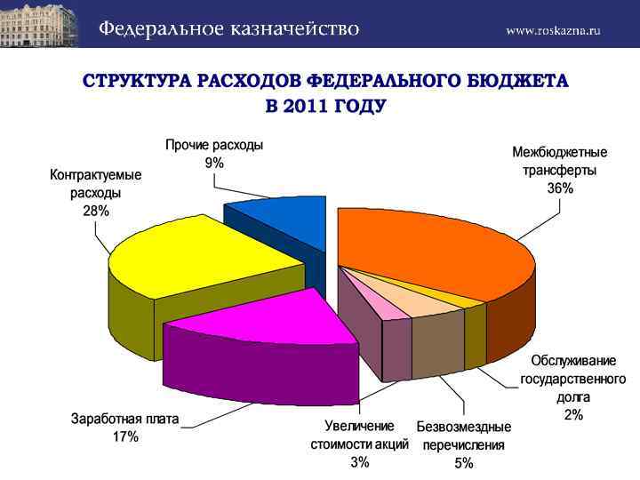 Численность отделов, связанных с обеспечением исполнения федерального бюджета по расходам, – 49, 8% от общей численности работников территориальных управлений Казначейства России, том числе: Операционные отделы 7, 8%, – Отделы расходов 20, 3%, – Отделы ведения федеральных реестров – 3, 9%, Отделы кассового обслуживания бюджетов – 16, 0%, Отделы обслуживания силовых ведомств – 1, 6%, Другие «дружественные» отделы – 0, 2%