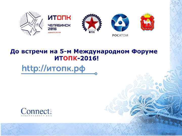 Как можно поучаствовать Организатор мероприятия – ИД «КОННЕКТ» Вся информация и контакты по адресу: http: //www. итопк. рф/registration Организаторы рады будут видеть представителей предприятий ОПК в числе докладчиков форума. Заявки на выступление принимаются до 30 апреля.