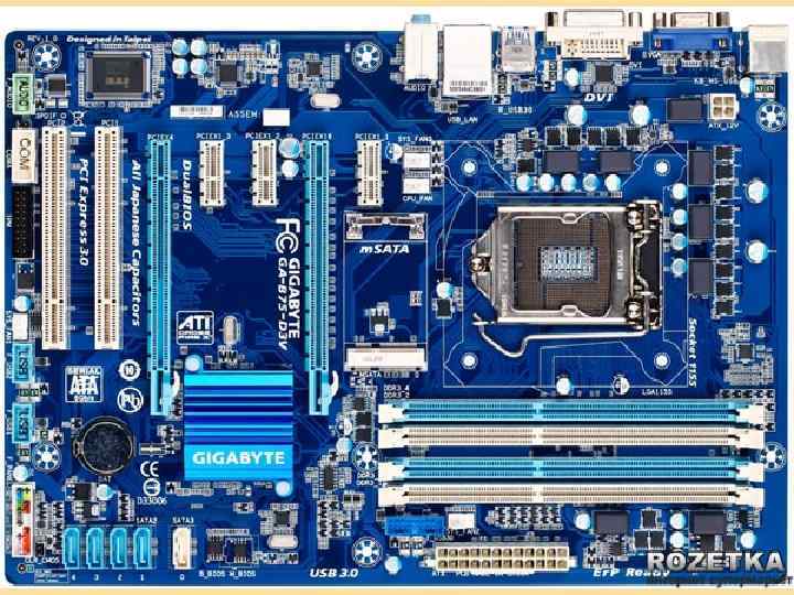 Материнська плата: Процесор Системна шина Оперативний запам’ятовуючий пристрій (ОЗП) Постійний запам’ятовуючий пристрій (ПЗП) Роз’єми для адаптерів (контролерів)