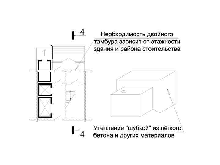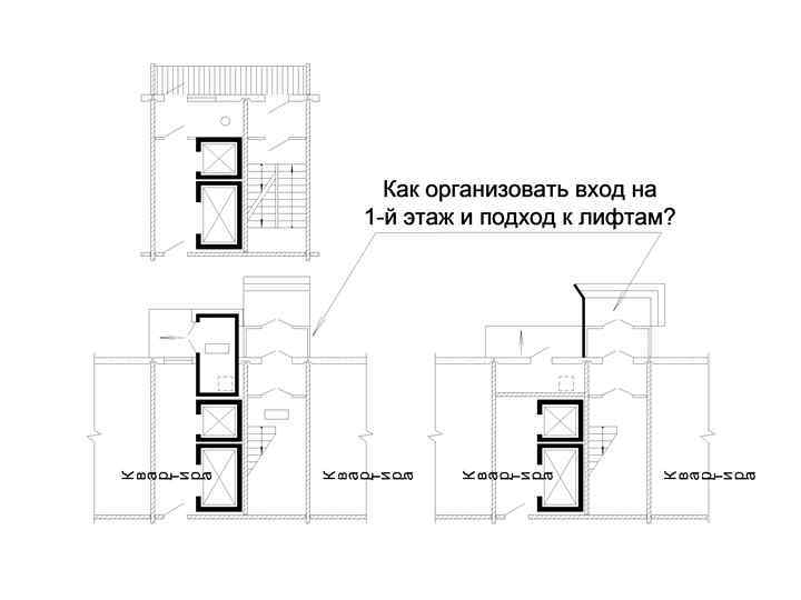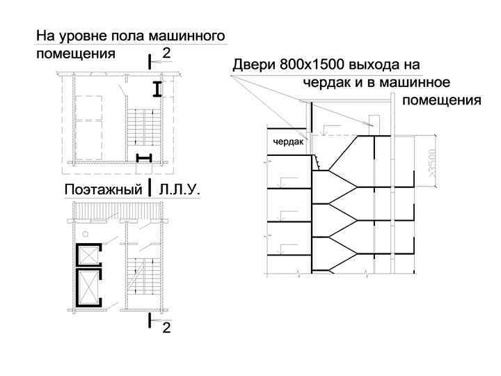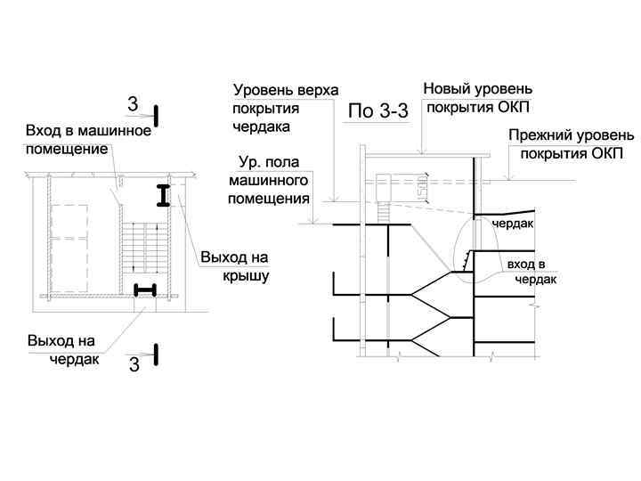 Входы в машинное помещение лифтов, на чердак и на крышу должны быть также организованны из этого ОКП. (Объединённого коммуникационного помещения)