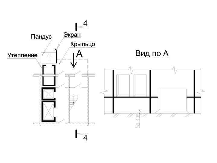 Объединённое коммуникационное помещение и организация входного узла в первом этаже здания.