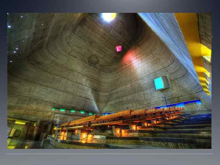 ОБЪЕКТ: Церковь Святого Петра (L'eglise St. Pierre) МЕСТО: Фирмини, Франция ГОД: 2003 АРХИТЕКТОР: Ле Корбюзье ВЕТВЬ церкви: Католическая СТИЛЬ: Постмодернизм