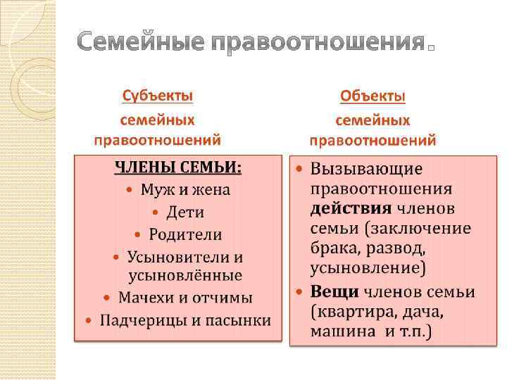 Исторически семья появилась позже брака и не может служить исходным пунктом при его определении. 2) Брак – парное отношение, семья – отношение групповое. 3) Брак – только отношение, семья – еще и социально организованное объединение людей. 4) Количественное отличие – семья чаще всего численно больше брака. 1)