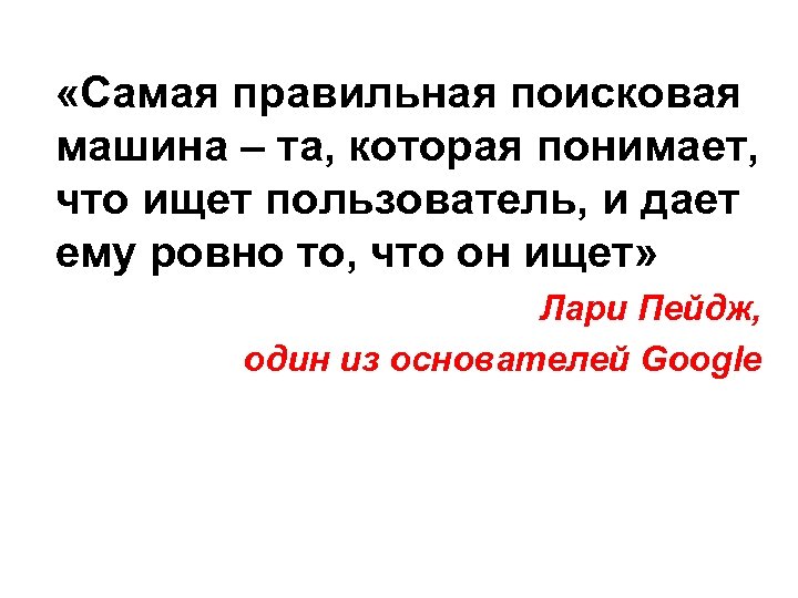 «Самая правильная поисковая машина – та, которая понимает, что ищет пользователь, и дает ему ровно то, что он ищет» Лари Пейдж, один из основателей Google