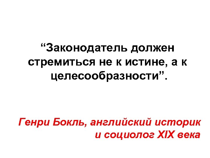“Законодатель должен стремиться не к истине, а к целесообразности”. Генри Бокль, английский историк и социолог XIX века