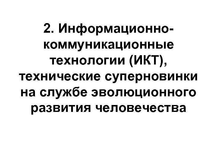 2. Информационнокоммуникационные технологии (ИКТ), технические суперновинки на службе эволюционного развития человечества