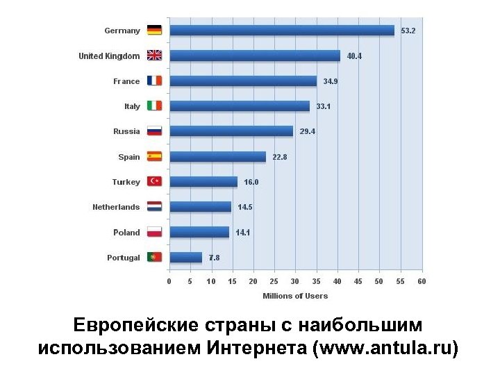 Европейские страны с наибольшим использованием Интернета (www. antula. ru)