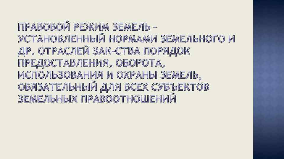 • Охрана земель – деятельность ОГВ, ОМУ, ФЛ, ЮЛ, направленная на рациональное использование, воспроизводство земли как компонента природной среды и природного ресурса, на предотвращение ухудшения качественного состояния земель в результате негативного воздействия хозяйственной и иной деятельности и на ликвидацию ее последствий