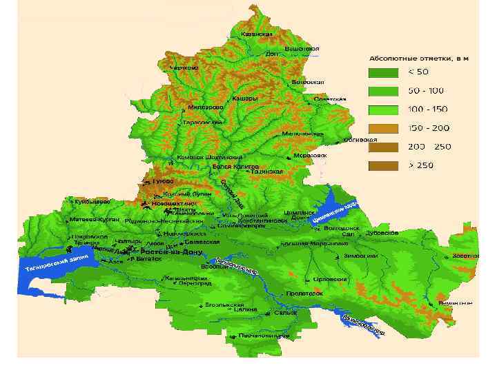 Область занимает площадь 100, 8 тыс. кв. км, что составляет 0, 6 % территории России, имеет протяжённость 470 км с севера на юг, 455 км с запада на восток. Занимаемая территория равна по площади Дании, Бельгии и Нидерландам вместе взятым. Ростовская область находится в южной части Восточно. Европейской равнины и частично в Северо-Кавказском регионе, занимая обширную территорию в речном бассейне Нижнего Дона. По характеру поверхности территория области представляет собой равнину, расчлененную долинами рек и балками. Максимальная высота над уровнем моря - 253 м. С севера на территорию области заходит Среднерусская возвышенность, на западе вклинивается восточная часть Донецкого кряжа, в юговосточной части области возвышаются Сальско-Манычская гряда и Ергени.