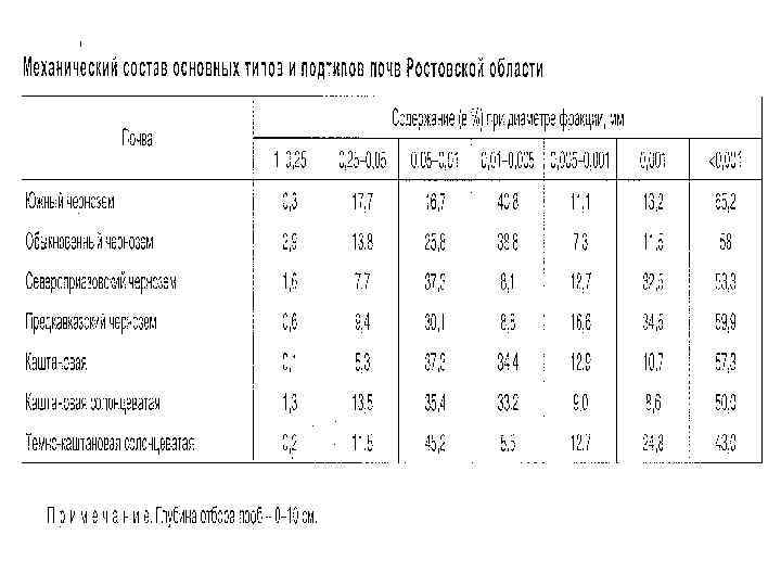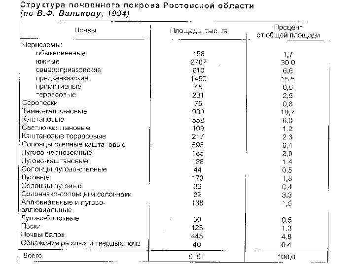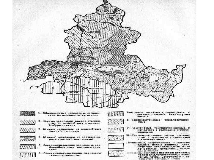 Задание 1. Составить сводную таблицу соответствия почвообразующих пород, основных геоморфологических районов (структур) и почв Ростовской области. 1. Доно-Донецкая впадина 1. Ледниковые и водноледниковые отложения – суглинки и глины с валунами и обломками кристаллических пород 2. Эоловые лессовидные суглинки 1. Черноземы обыкновенные суглинистые на лессовидных суглинках(Восточно-европейская фация) 2. Южные черноземы тяжелосуглинистые на желто-бурых и красно-бурых глинах (Восточноевропейская фация) 3. Южные черноземы на желто-бурых глинах и суглинках 4. Южные черноземы переходящие к темнокаштановым тяжелосуглинистым 5. Темно-каштановые тяжелосуглинистые 6. Почвы песчаных массивов