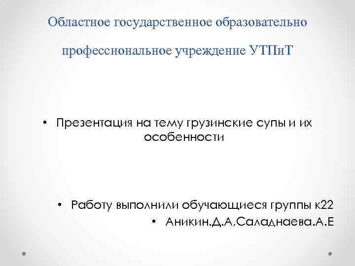 Областное государственное образовательно профессиональное учреждение УТПи. Т • Презентация на тему грузинские супы и их особенности • Работу выполнили обучающиеся группы к 22 • Аникин. Д. А, Саладнаева. А. Е