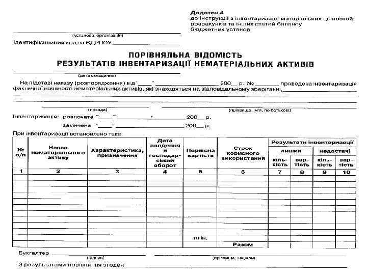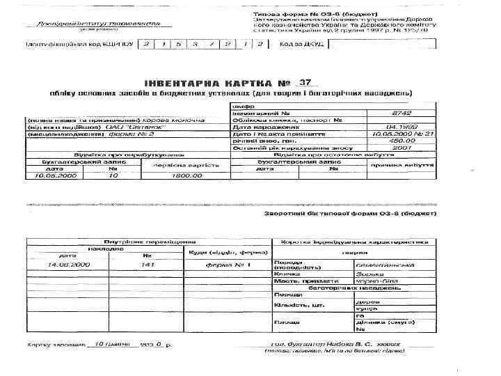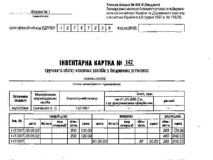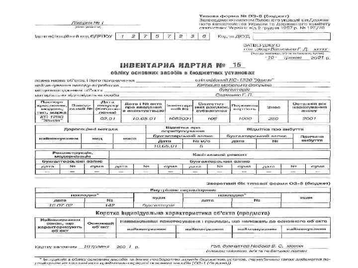 Будова інвентарних номерів об′єктів основних засобів бюджетних установ: - перші два знаки - номер (код) синтетичного рахунка, - третій знак – номер субрахунка, - четвертий знак – підгрупа основних засобів, - останні чотири знаки – порядковий номер предмета у підгрупі (всього 8 знаків).