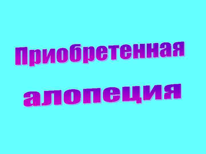 АЛОПЕЦИЯ (ОБЛЫСЕНИЕ) — отсутствие волос на голове, других волосистых участках кожи. Может быть: • тотальной (полное отсутствие волос), • диффузной (резкое поредение волос), • очаговой (отсутствие волос на ограниченных участках)