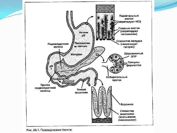 Пищеварительные соки Пищеварительный сок Кол-во, р. Н л Химический состав, % Вода Орг. в-ва Неорг. (белки) в-ва Желудочный 2 -2, 5 сок 1, 5 -2, 5 99 0, 5 Панкреатический сок 0, 6 -0, 8 7, 5 -8, 2 98, 4 1, 2 0, 6 Кишечный сок 2 -3 8, 5 0, 5 -1, 0 0, 3 98, 7