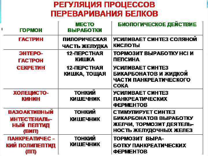Протеиназы желудочно-кишечного тракта Источник Фермент Субстратная специфичность Желудочный пепсин сок реннин гастриксин Панкреатический сок трипсин эндопептидазы химотрипсин коллагеназа эластаза карбоксипептидаза Кишечный сок аминопептидаза трипептидазы дипептидазы экзопептидазы