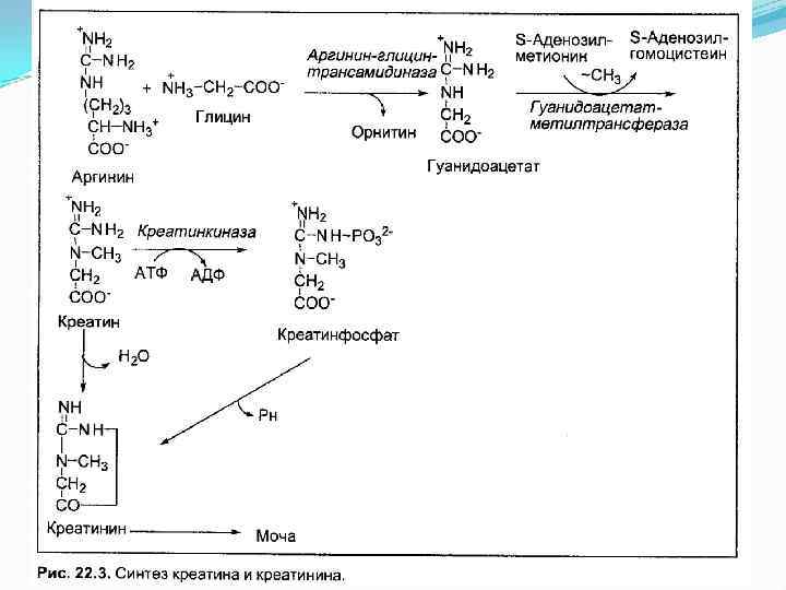 Существует 2 пути синтеза глицина: 1) из серина с участием производного фолиевой кислоты в результате действия сериноксиметилтрансферазы: 2) в результате действия фермента глицинсинтазы в реакции: