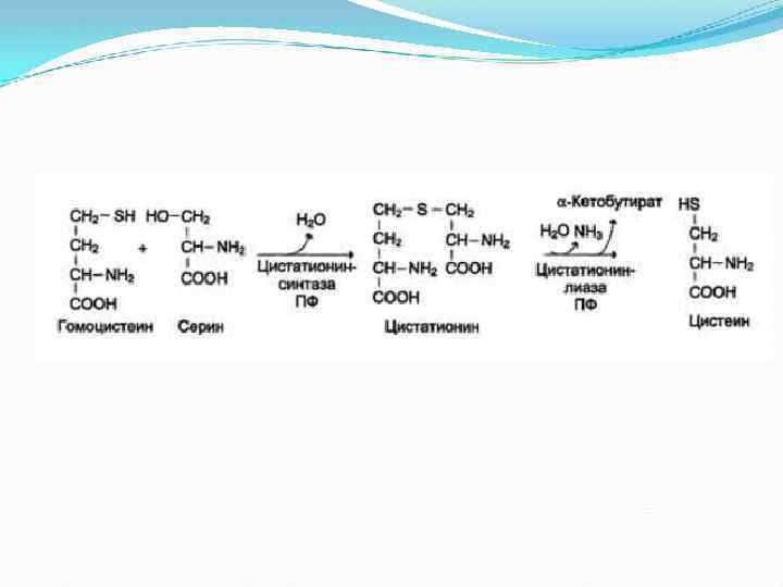 Обмен серосодержащих аминокислот В состав белков человека входят 2 аминокислоты, содержащие серу, - метионин и цистеин. Эти аминокислоты метаболически тесно связаны между собой