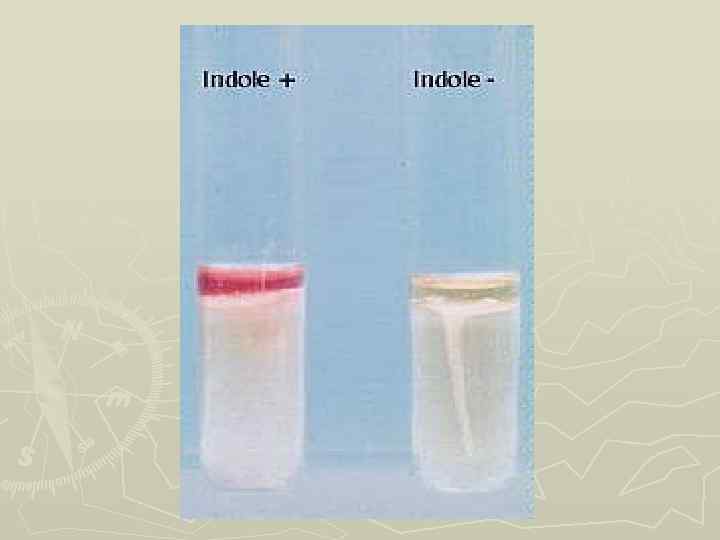 Определение протеолитических ферментов = посев бактерий уколом в столбик 10 -20% желатины и пептонную воду (в пробирку к пробке прикрепляют индикаторные бумажки: - 1. на индол = С 8 Н 7 N – Способ Эрлиха: в пробирку с культурой добавляют 2 -3 мл эфира и реактив Эрлиха (спиртовый раствор пара-диметил-амино-бенз-альдегид с хлористоводородной кислотой →встряхивают → розовое окрашивание или + горячий насыщенный раствор щавелевой кислоты → красное), ►
