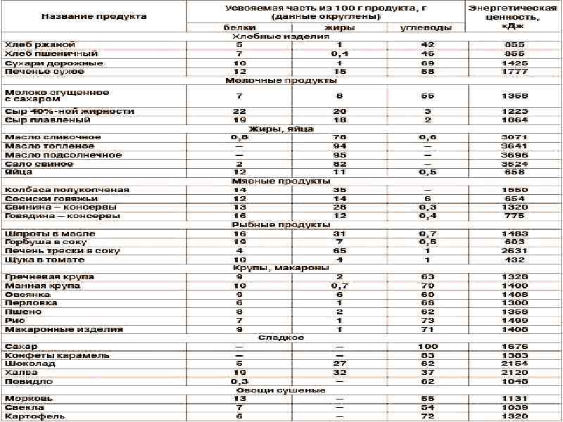 Энергетическая ценность пищи = калорийность