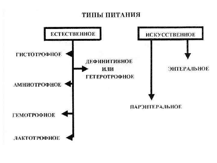 ПИТАНИЕ процесс доставки, усвоения питательных веществ в организм для обеспечения энергетических и пластических потребностей (также потребностей в воде, витаминах, минеральных веществах) Виды питания - естественное; - искусственное (клиническое парентеральное и зондовое энтеральное); - лечебное; - лечебно-профилактическое.