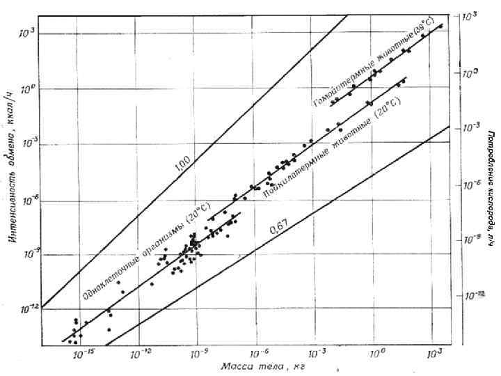 Зависимость между массой тела млекопитающих и интенсивностью обмена в состоянии покоя