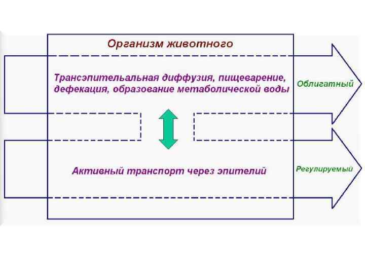 У животных - строгих осморегуляторов - концентрация соли и воды внутри организма поддерживается относительно постоянной несмотря на изменение данных показателей во внешней среде. Для этого необходимо, чтобы величина притока и оттока воды и солей была одинаковой на протяжении длительного времени. Такой осмотический гомеостаз поддерживается за счет метаболической энергии.