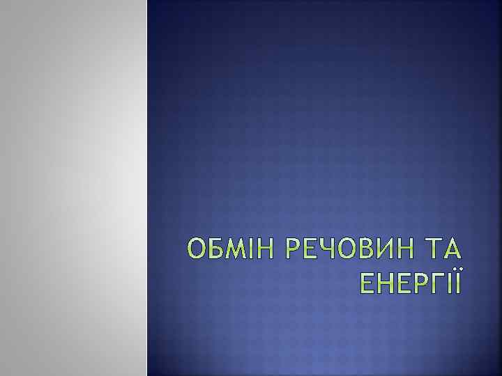 ОБМІН РЕЧОВИН ТА ЕНЕРГІЇ q О бмін речови н - метаболі зм - полягає в біологічному окисненні (аеробному чи анаеробному) органічних енерговмісних речовин з використанням виділеної енергії. q Ця енергія використовується для життєвих процесів: підтримання дихання, кровообігу і температури тіла, для здійснення скорочень м'язів при русі тіла, виконанні роботи та різних поведінкових реакціях.