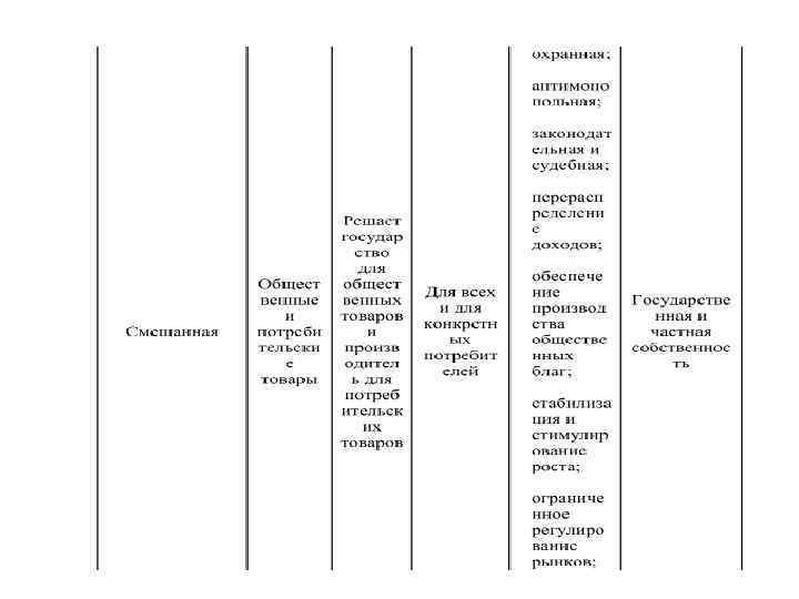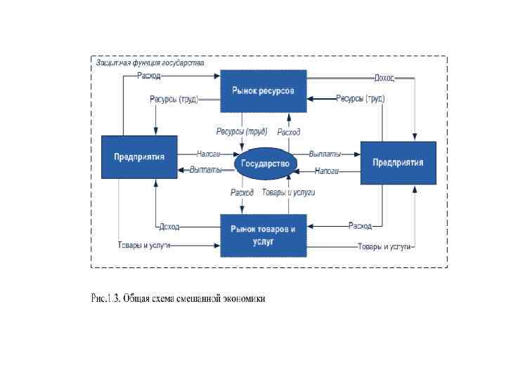 Смешанная экономическая система • Смешанная экономика предполагает сочетание регулирующей роли государства и экономической свободы производителей. • Предприниматели и рабочие перемещаются из отрасли в отрасль по собственному решению, а не по правительственным директивам. • Государство осуществляет антимонопольную, социальную, фискальную (налоговую) и другие экономические политики, что в той или иной степени способствует экономическому росту страны и повышению жизненного уровня населения.