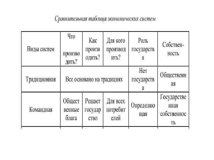 Виды экономических систем • • Традиционная Рыночная командная (или централизованную) смешанная экономика.