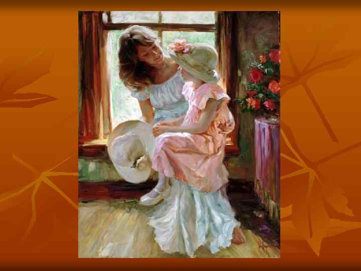 Роберт Рождественский « Здравствуй, мама» n Здравствуй, мама. Опять мне снится песня твоя. Здравствуй, мама. Светла как память нежность твоя. Этот мир не от солнца такой золотой, Он наполнен до края твоей добротой. На земле хороших людей немало, Сердечных людей немало, И все-таки лучше всех на земле Мама, моя мама. n Здравствуй, мама. Ты слабеешь. В меня уходят силы твои. Ты стареешь. В меня уходят годы твои. Все равно, несмотря на любые года, Будешь ты для меня молодой навсегда. На земле хороших людей немало, Сердечных людей немало, И все-таки лучше всех на земле Мама, моя мама.