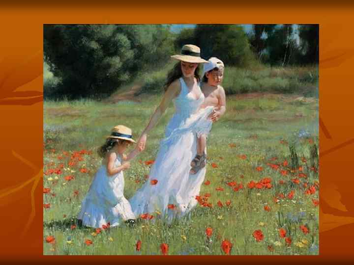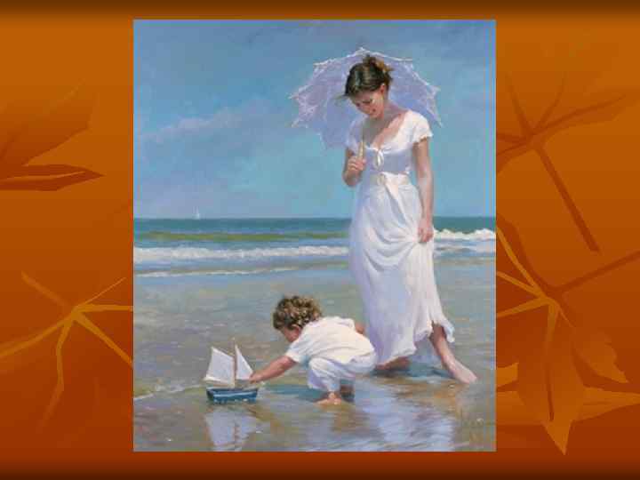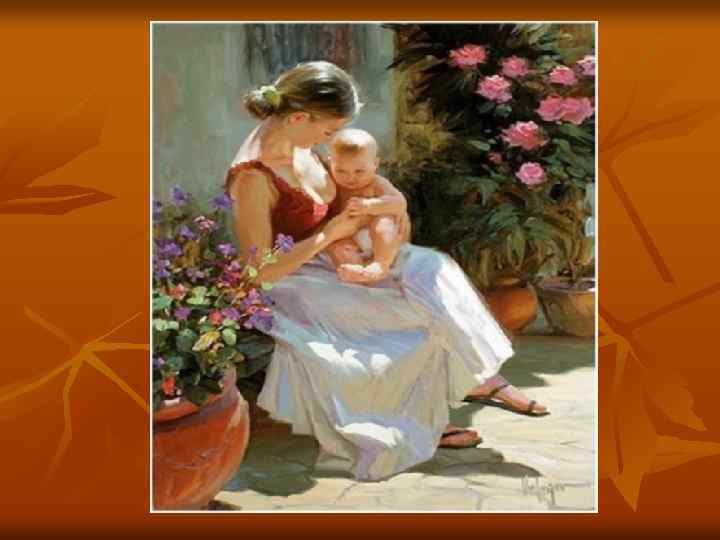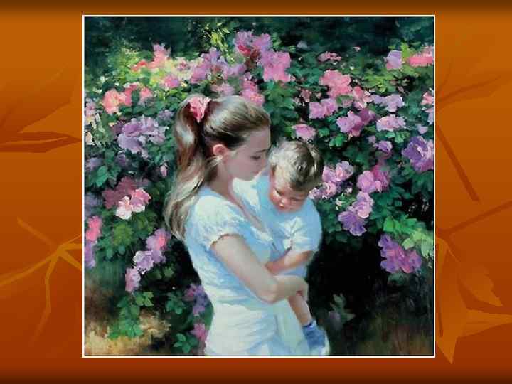 Рюрик Ивнев « Мать» n Приходит старость. С ней не так легко Нам справиться, и мы уже не дети. И наша юность где-то далеко, Как будто даже на другой планете. И кажутся каким-то дальним сном Картинки из «Руслана и Людмилы» , Деревья сада, двухэтажный дом И женский образ — бесконечно милый. Что может быть чудесней слова: мать? О, сколько губ, трепещущих и нежных, Не уставали матери шептать О самых первых чувствах белоснежных. n О, сколько слов, горячих, как огонь, Жгли щеки детские и днем и ночью. Их не собрать теперь в одну ладонь. И не увидеть никогда воочию. Любимая, не уходи. . . Постой! Ты для меня всегда была святыней. И на пути, завещанном тобой, Как в раннем детстве, я стою поныне. Вот почему я этот мир люблю, Овеянный воспоминаньем детства. Вот почему я подошел к Кремлю В семнадцатом году с открытым сердцем, Как подходил я к матери младенцем.