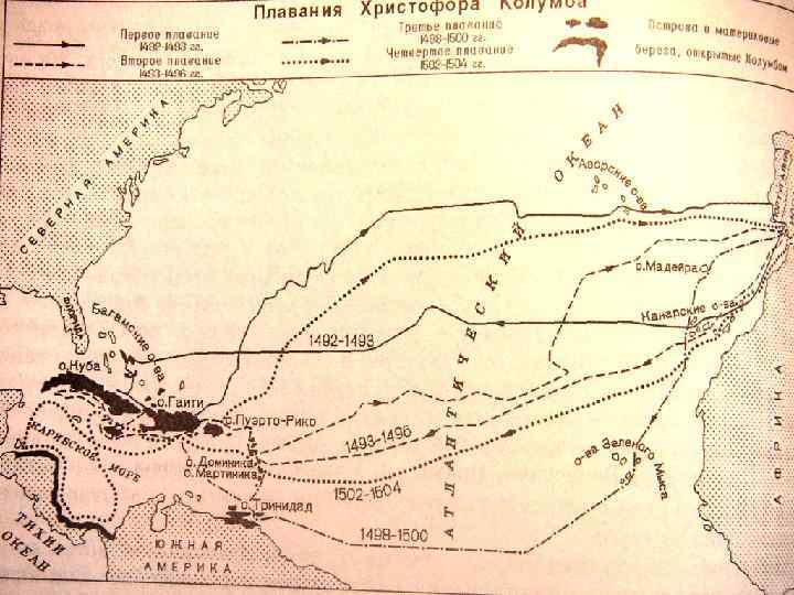 Испанская колониальная империя 12 октября 1492 г. открытие Колумбом Америки Плавания Колумба: 1492 -1493, 14931496, 1498 -1500, 1502 - 1504 Территории: о-ва Карибского моря - Багамы, Куба, Гаити, Тринидад и Тобаго, Мартиника, Доминика, Пуэрто. Рико побережья Панамы, Коста-рики, Никаграгуа, Гондураса
