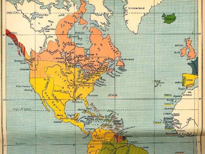 Британская колониальная империя район Карибского моря -Северная Америка: Ньюфаундлен, Массачутский залив, долина р. Джеймс (Виргиния), Гудзонов зал. Британская Индия (Индия, Пакистан, Бангладеш, Шри. Ланка, Мьянма)