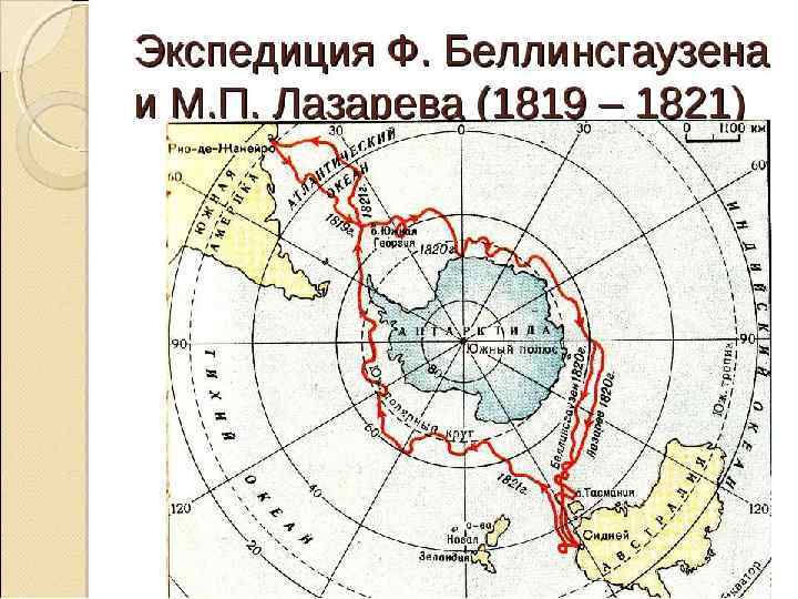 • 1819 – 1821 – экспедиция • Ф. Ф. Беллинсгаузена и М. П. Лазарева, которая открыла Антарктиду