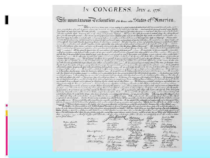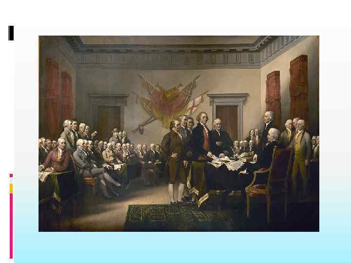 Апрель 1775 г. сражение при Лесингтоне, положившее начало национальноосвободительной войне. 10 мая 1775 г. В Филадельфии собрался II Континентальный конгресс, принявший «декларацию причин и необходимости взяться за оружие» . 1. 07. 1776 г. принята Верджинская декларация прав. 4. 07. 1776 г. провозглашена Декларация независимости США. 1783 г. подписан Парижский мирный договор, в котором Великобритания признавала» свободу, суверенность и независимость» своих бывших американских колоний – 13 штатов, образовавших США.