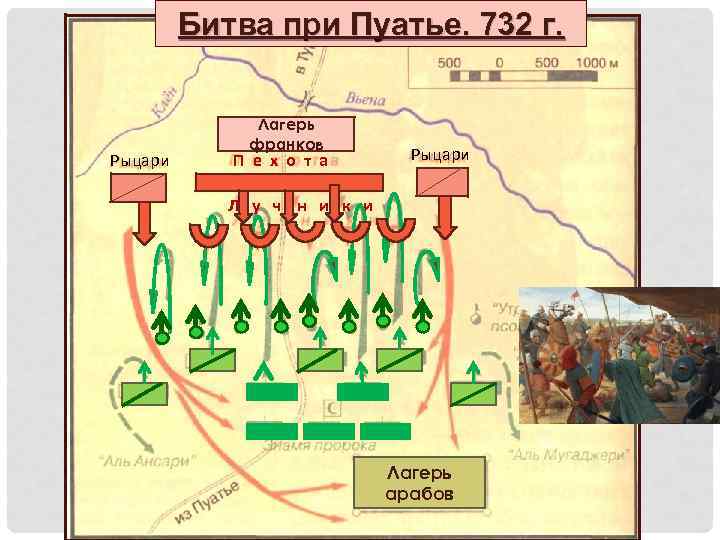 Битва при Пуатье. 732 г. Рыцари Лагерь франков П е х о т а Рыцари Л у ч н и к и Лагерь арабов