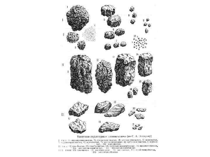 СЛОЖЕНИЕ ПОЧВЫ Под сложением почвы понимают внешнее выражение степени и характера ее плотности и порозности. При внимательном рассмотрении почвенных горизонтов можно заметить сеть трещин, пор, ячеек, пустот и т. д. , различных по форме н размерам. По величине и форме воздушных пор и полостей различают следующие типы сложения почв: А. Полости, расположенные внутри структурных отдельностей Б. Полости расположены между структурными отдельностями