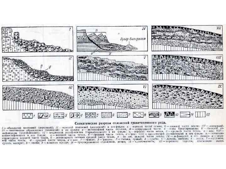 Отложения гравитационного ряда К гравитационным (от лат. gravitas — тяжесть) относятся отложения, формирующиеся на склонах и у их подножий в результате смещения исходных продуктов разрушения коренных пород под воздействием собственного веса, без участия или при незначительном участии других факторов.