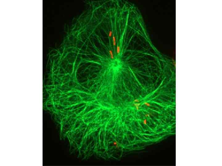 • Микротрубочки интерфазных клеток • Практически во всех эукариотических клетках в гиалоплазме можно видеть длинные неветвящиеся микротрубочки. В больших количествах они обнаруживаются в цитоплазматических отростках нервных клеток, фибробластов и других изменяющих свою форму клеток. Они могут быть выделены сами или можно выделить образующие их белки: это те же тубулины со всеми их свойствами. • Главное функциональное значение таких микротрубочек цитоплазмы заключается в создании эластичного, но одновременно устойчивого внутриклеточного каркаса (цитоскелета), необходимого для поддержания формы клетки.