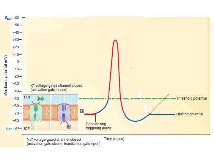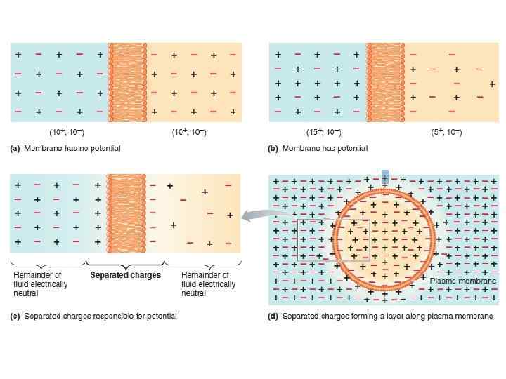 Потенциал покоя • Na + и K + каналы закрыты ионы Na + et K + входят и выходят по градиенту концентрации Figure 11. 12. 1