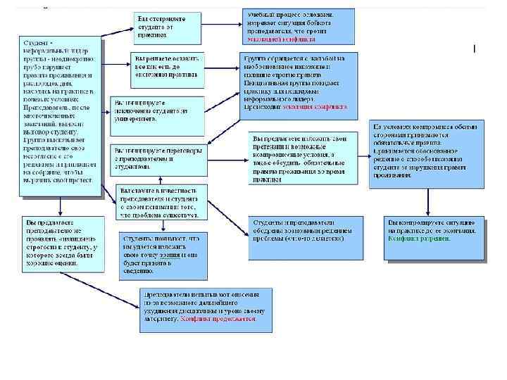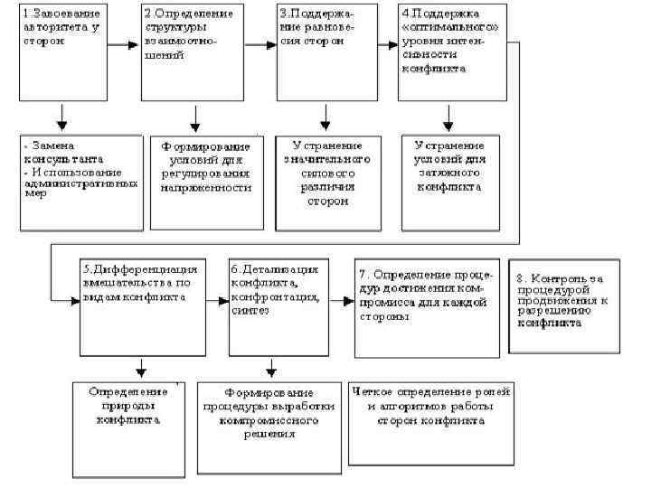 конфликт-менеджемент профилактика • На предконфликтной стадии конфликтменеджемент предусматривает прогнозирование конфликтной ситуации. Основными методами являются наблюдение и анализ ситуации. Вмешиваться еще рано, так как не известно, насколько далеко готовы пойти оппоненты, и к каким последствиям может привести их противоборство. Первым шагом на пути к разрешению конфликта может служить создание документа, регламентирующего нормы и процедуры урегулирования конфликта.