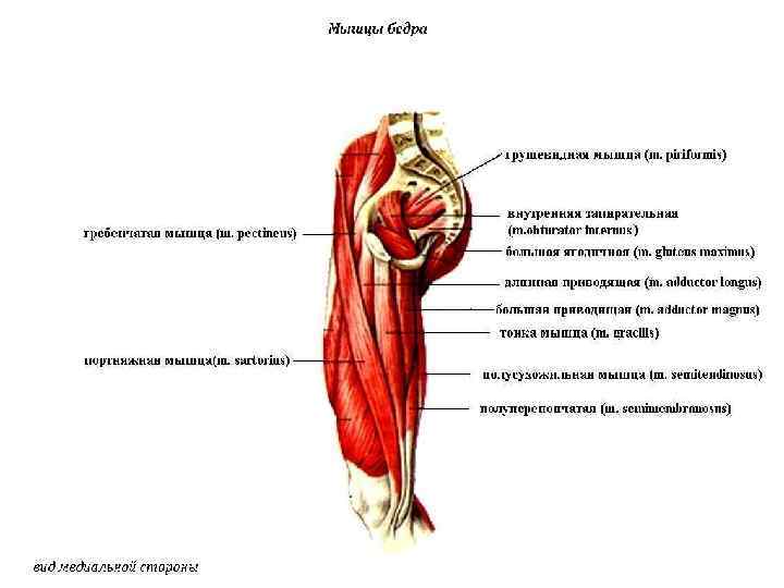 Мышцы нижних конечностей подразделяются на мышцы тазового пояса и мышцы свободной нижней конечности Мышцы тазобедренной области действуют на тазобедренный сустав, они начинаются от костей таза и прикрепляются на бедренной кости. Различают наружные и внутренние. Внутренних мышц три: • Подвздошно-поясничная - сгибает бедро, одновременно вращая его кнаружи. • Грушевидная мышца - вращает бедро кнаружи; • Внутренняя запирательная мышца- вращает бедро кнаружи.