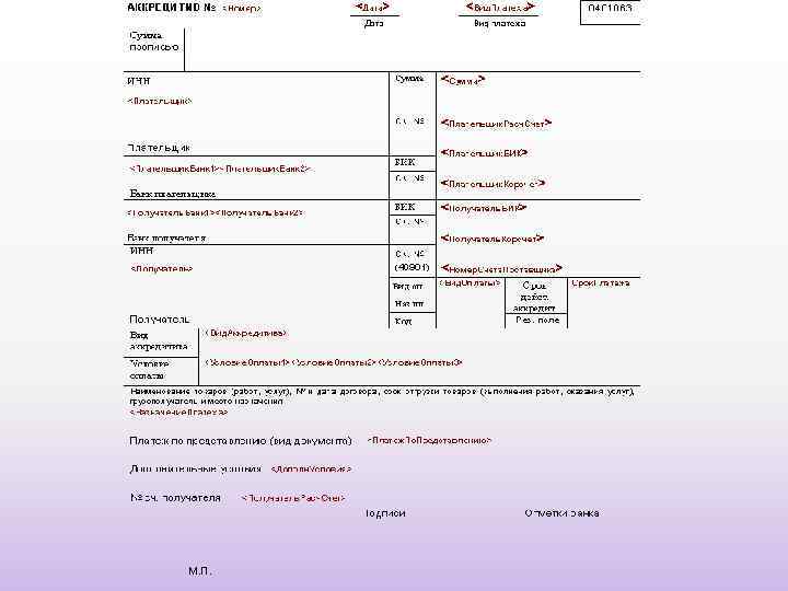 Схема расчетов с использованием аккредитива (банк-эмитент) 7 9. БАНК получателя (исполняющий банк) 3 8 6. 4 БАНК плательщика 2 ПЛАТЕЛЬЩИК 1 5 ПОЛУЧАТЕЛЬ (поставляет товара, выполняет работы, оказывает услуги)