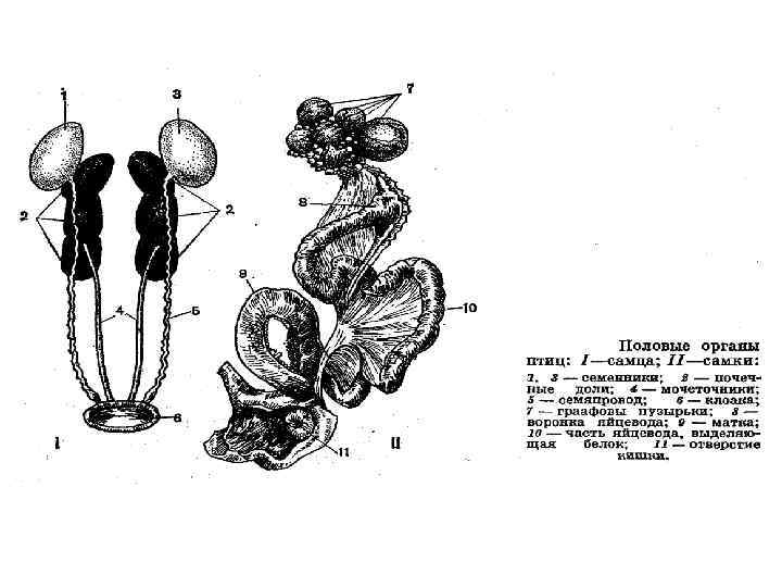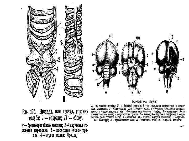 • Через парные ноздри воздух засасывается в носовую полость и через хоаны переходит в ротовую полость. Сюда узкой щелью открывается гортань, поддерживаемая тремя гортанными хрящами. За гортанью идет трахея. В полости тела трахея распадается на два бронха, каждый из которых входит в соответствующее легкое и там ветвится. Легкие относительно невелики по размерам и мало растяжимы; они прирастают к ребрам по бокам позвоночного столба. Войдя в легкое, бронх распадается на 15 -20 вторичных бронхов, большинство которых кончается слепо, а часть сообщается с воздушными мешками. Вторичные бронхи сообщаются друг с другом многочисленными более мелкими парабронхами, от которых отходит множество бронхиолей - радиально расположенных ячеистых выростов, густооплетенных легочными кровеносными капиллярами. С легкими птиц связаны воздушные мешки. • У птиц полностью разобщены большой и малый круги кровообращения: венозные и артериальные потоки крови нигде не смешиваются, правая (венозная) половина сердца полностью отделена от левой (артериальной). Сердце четырех камерное, из двух предсердий и двух желудочков. Масса сердца по отношению к массе тела велика. Например, у колибри его масса составляет до 2, 75% массы всего организма. У всех птиц, которые часто летают, сердце должно быть крупным, чтобы обеспечивать быструю циркуляцию крови. • Мочевого пузыря у птиц нет. У самок развивается только левый яичник. Это уменьшает вес тела. • В головном мозге сильно развит мозжечок - центр координации движений и равновесия.