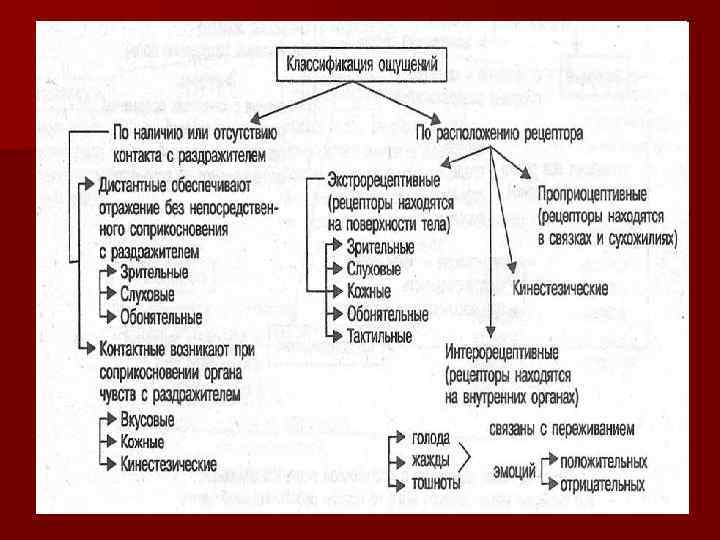 Ощущение это простейший психический процесс, состоящий в отражении отдельных свойств предметов и явлений материального мира, а также внутренних состояний организма при непосредственном воздействии материальных раздражителей на соответствующие рецепторы.