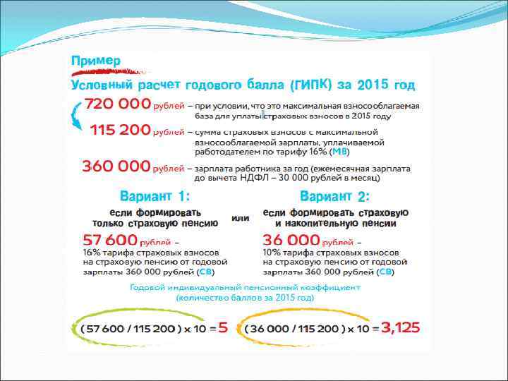 Пенсионная реформа 2015 года Переименование трудовых пенсий в страховые и выделение накопительной пенсии вместо накопительной части трудовой пенсии по старости Ужесточение условий назначения страховой пенсии по старости Новая пенсионная формула – балльная система в зависимости от соотношения получаемой зарплаты и максимальной зарплаты на которую начисляются «стандартные» страховые взносы «замораживание» прав выбора (мораторий) по накопительному компоненту