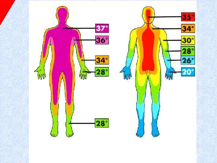 Тепловой баланс Теплопотеря в сухих (обычных) условиях: ь Радиация 55 -65%; ь Кондукция и конвекция вместе около 15% тепла; ь Дыхание и перспирация - остальное.