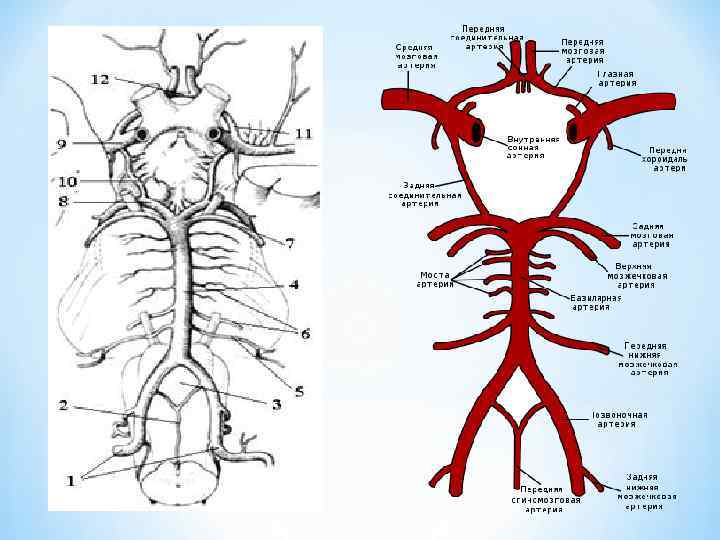 *Поражение внутричерепного отдела позвоночной артерии или задненижней мозжечковой артерии сопровождается синдромами поражения продолговатого мозга