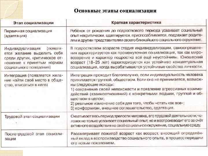Основные этапы социализации
