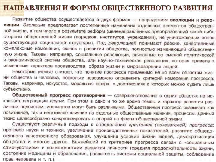 НАПРАВЛЕНИЯ И ФОРМЫ ОБЩЕСТВЕННОГО РАЗВИТИЯ